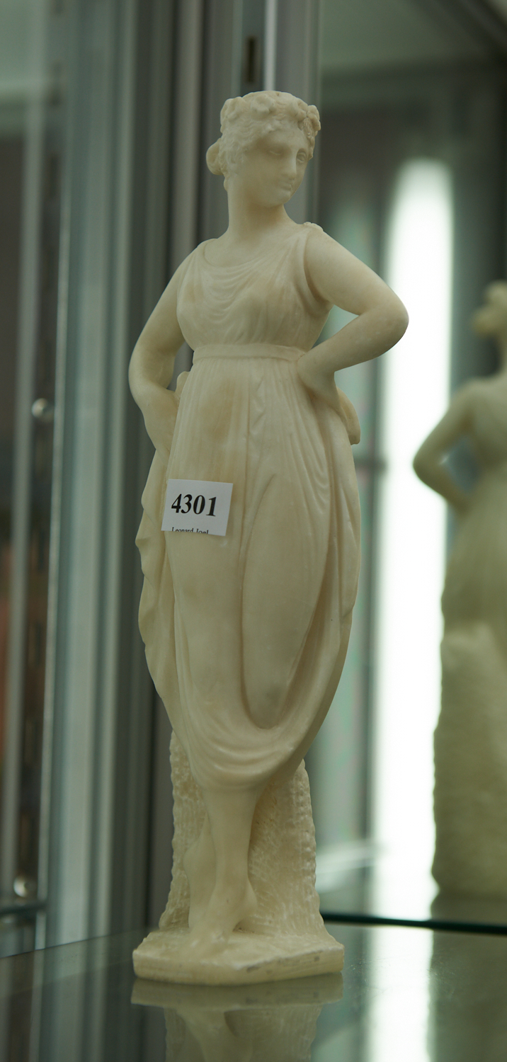 AN ALABASTER FIGURE OF A GRECIAN WOMAN (29 CM H), LEONARD JOEL LOCAL DELIVERY SIZE: SMALL