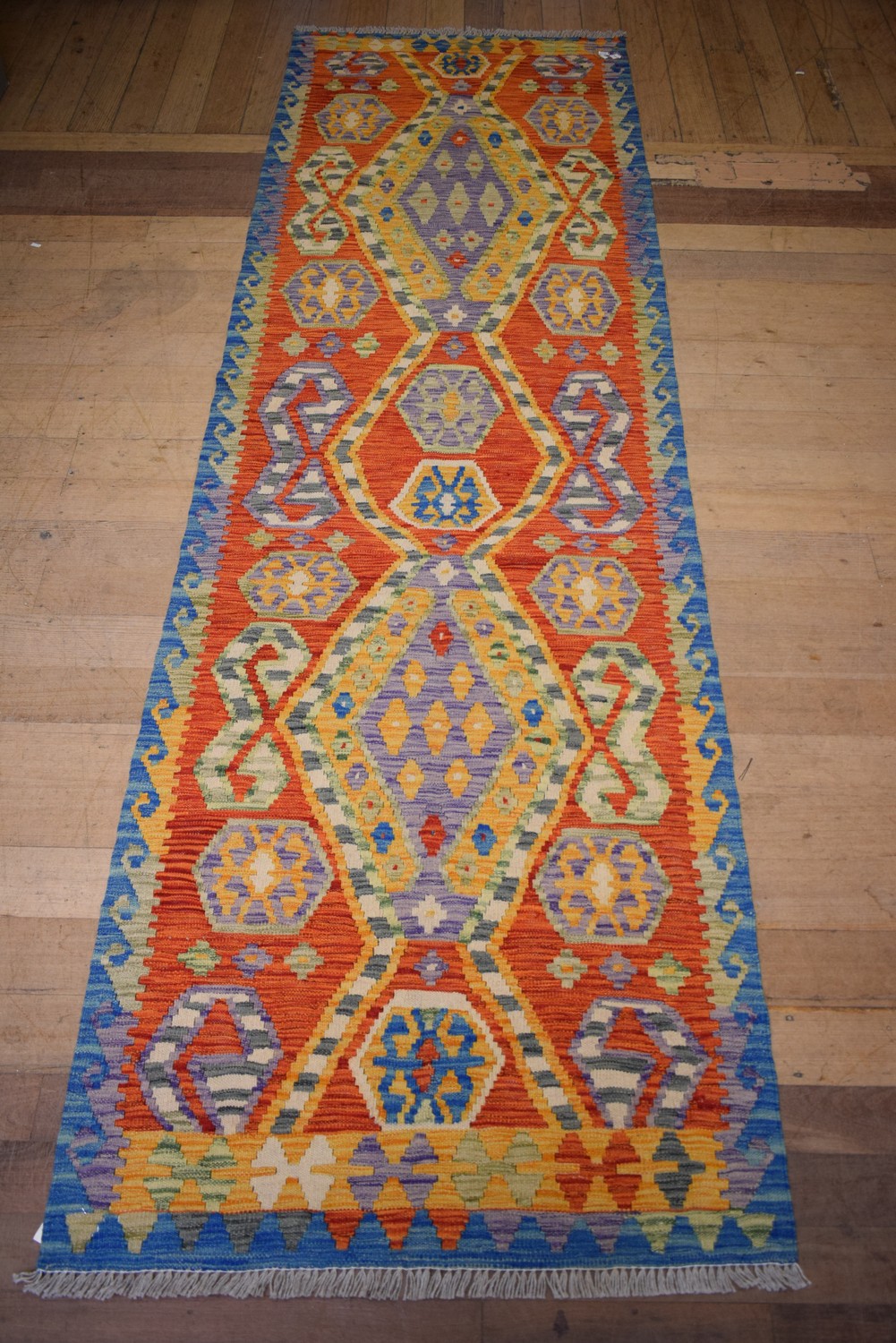 A KAZAK KILIM, 100% PURE WOOL BASE, ALL VEGETABLE DYES, HAND WOVEN IN AFGHANISTAN (308 x 88 CM) (LEONARD JOEL DELIVERY SIZE: LARGE)