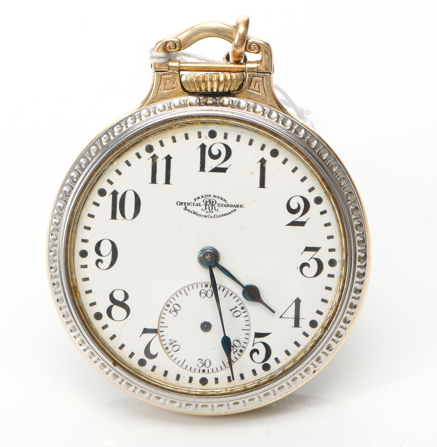 A BALL WATCH & CO CLEVELAND RAILWAY POCKET WATCH, DIAMETER 5CM.