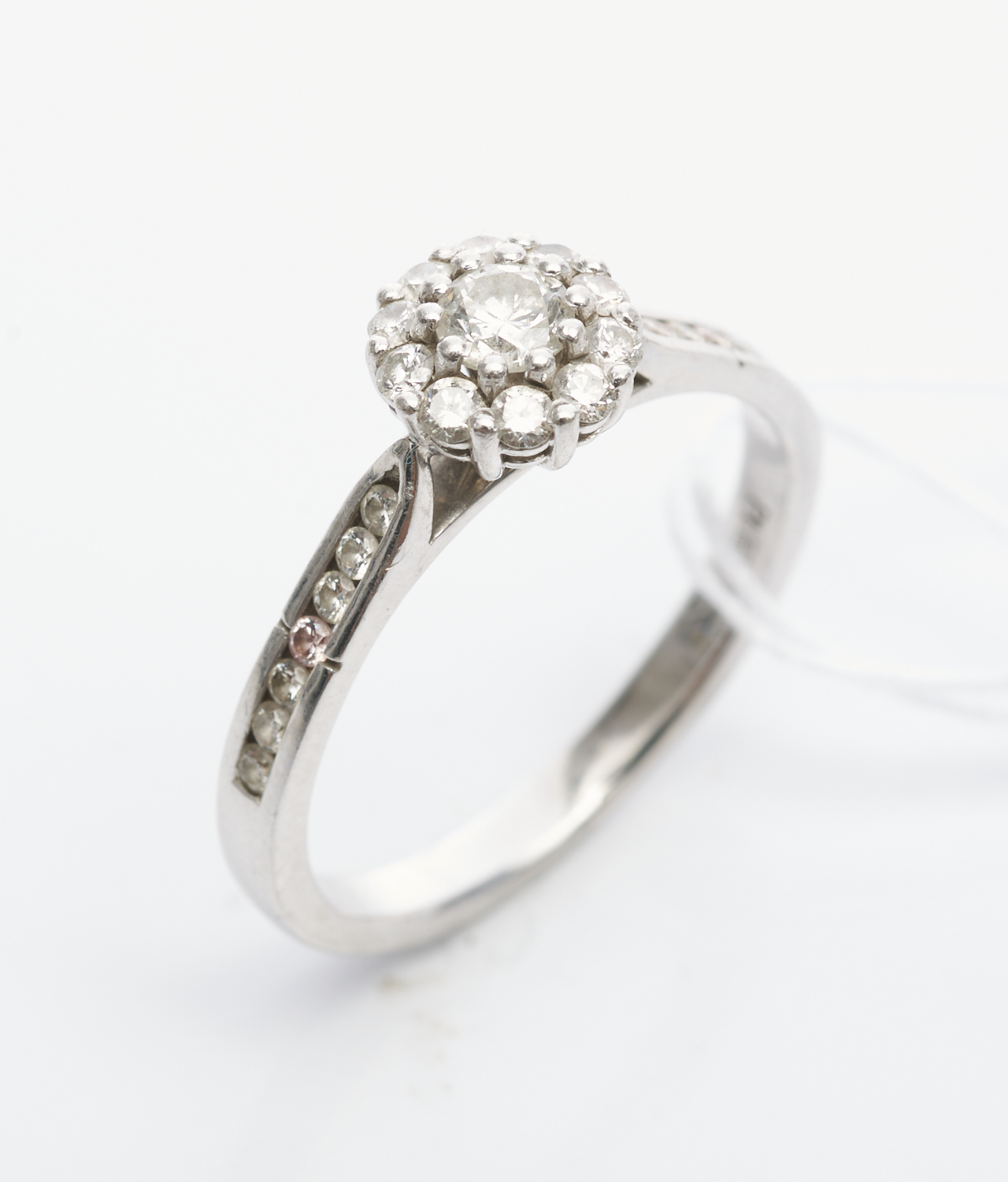 the pink diamonds are set on the shoulders, one on each side, estimated 0.01ct