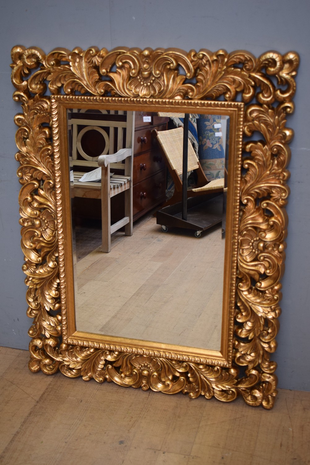 A DECORATIVE GILT EFFECT OVERMANTLE MIRROR (131H x 100W CM) (LEONARD JOEL DELIVERY SIZE: LARGE)