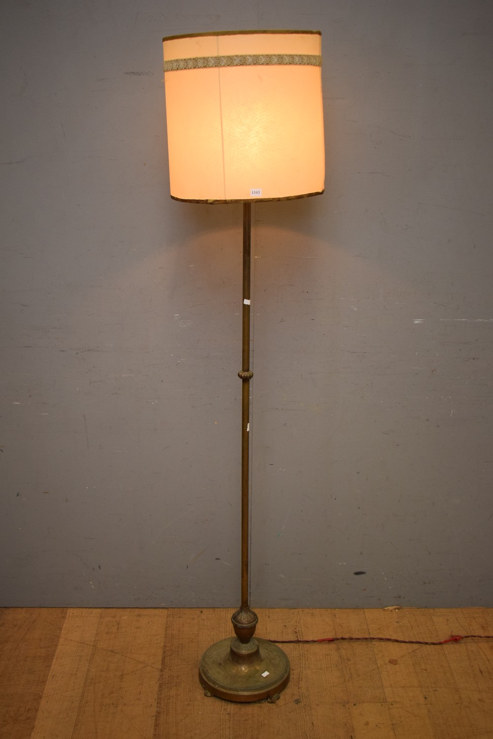 A BRASS STANDARD LAMP (A/F - NEEDS REWIRING) (171H x 35D CM) (LEONARD JOEL DELIVERY SIZE: LARGE)