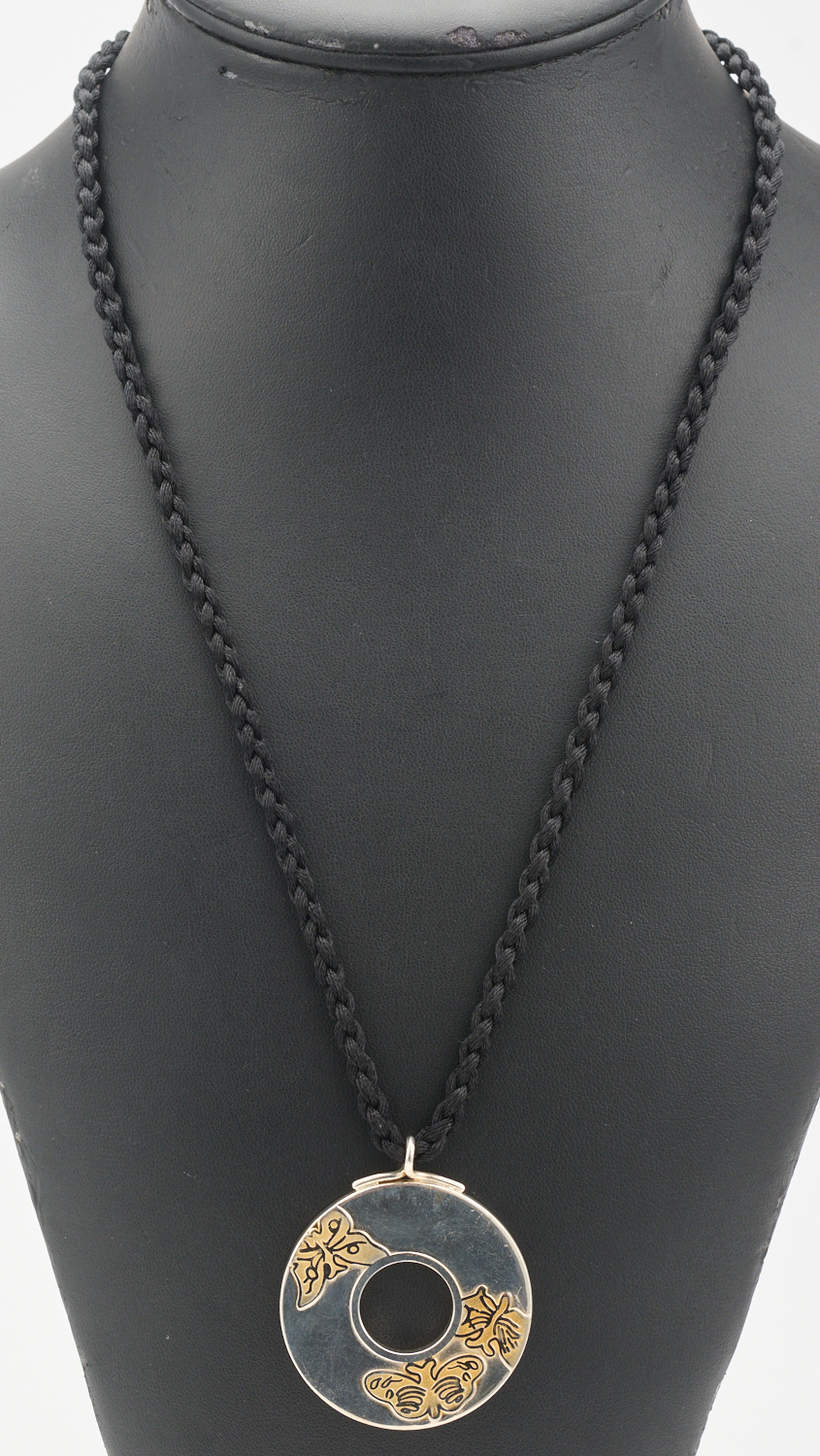 A TIFFANY & CO. SPAIN BUTTERFLY PENDANT BY ELSA PERETTI IN SILVER, TO A DRAW CORD NECKLACE