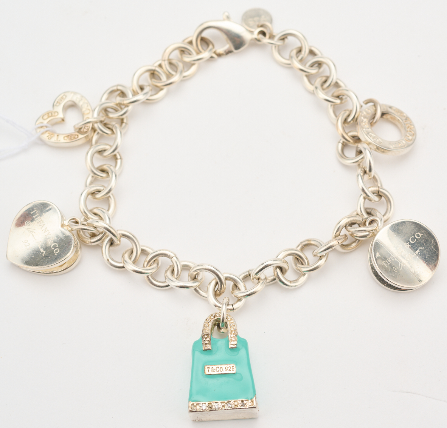 A TIFFANY & CO. CHAIN LINK CHARM BRACELET, IN SILVER