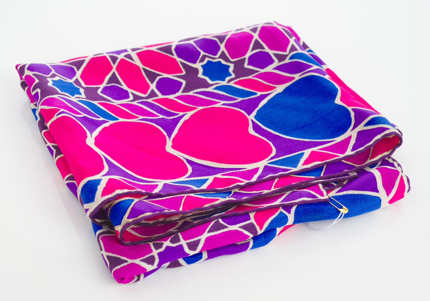 AN YVES SAINT LAURENT SQUARE SCARF IN RED AND PURPLE TWILL SILK