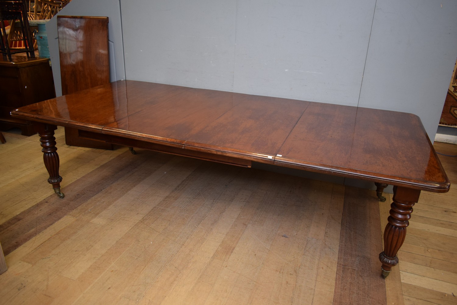 A VICTORIAN MAHOGANY EXTENSION DINING TABLE (74H x 280W - AS PICTURED x 135D CM) (PLEASE NOTE THIS HEAVY ITEM MUST BE REMOVED BY CARRIERS AT THE CUSTOMER'S EXPENSE. LEONARD JOEL STAFF CANNOT ASSIST CARRYING THIS ITEM) (X-LARGE ITEM)