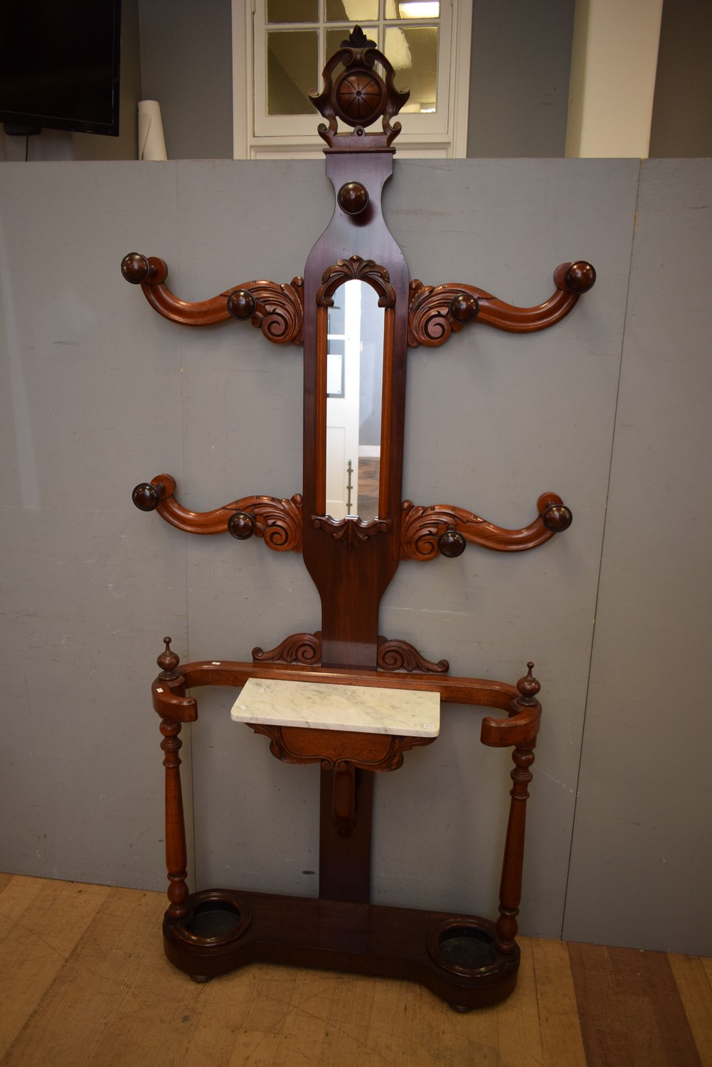 A MAHOGANY HALL STAND, C 1860S (240H x 107W x 32D CM) (PLEASE NOTE THIS HEAVY ITEM MUST BE REMOVED BY CARRIERS AT THE CUSTOMER'S EXPENSE. LEONARD JOEL STAFF CANNOT ASSIST CARRYING THIS ITEM) (X-LARGE ITEM)