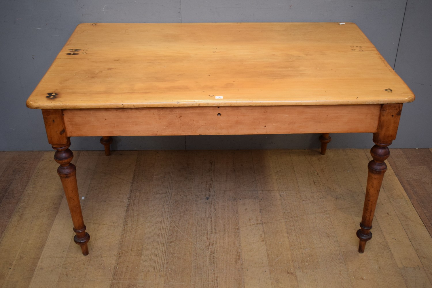 A PINE KITCHEN TABLE (75H x 138W x 88D CM) (PLEASE NOTE THIS HEAVY ITEM MUST BE REMOVED BY CARRIERS AT THE CUSTOMER'S EXPENSE. LEONARD JOEL STAFF CANNOT ASSIST CARRYING THIS ITEM) (X-LARGE ITEM)