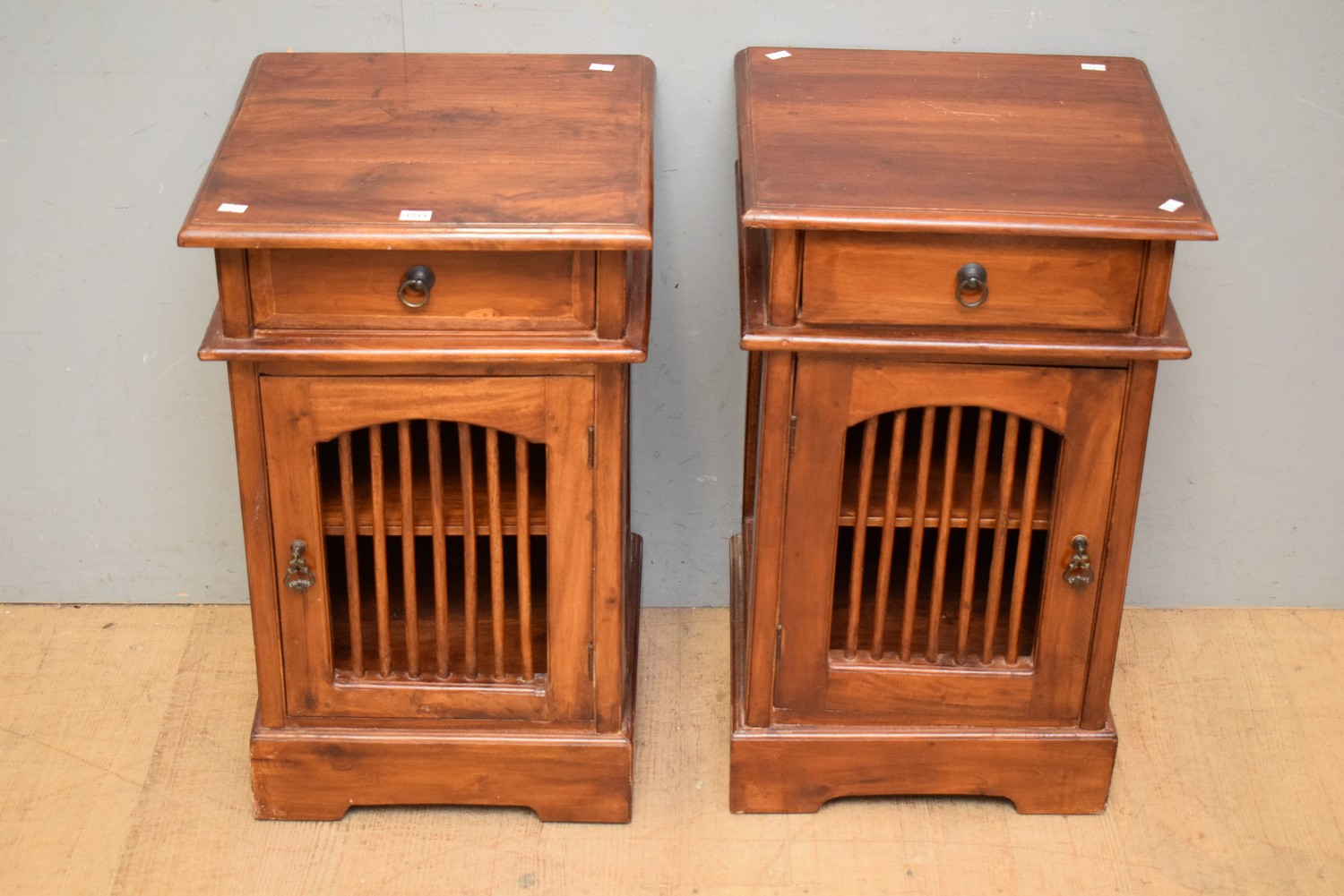 TWO CHINESE STYLE BEDSIDE CABINETS (66H x 40W x 36D CM) (LEONARD JOEL DELIVERY SIZE: MEDIUM)