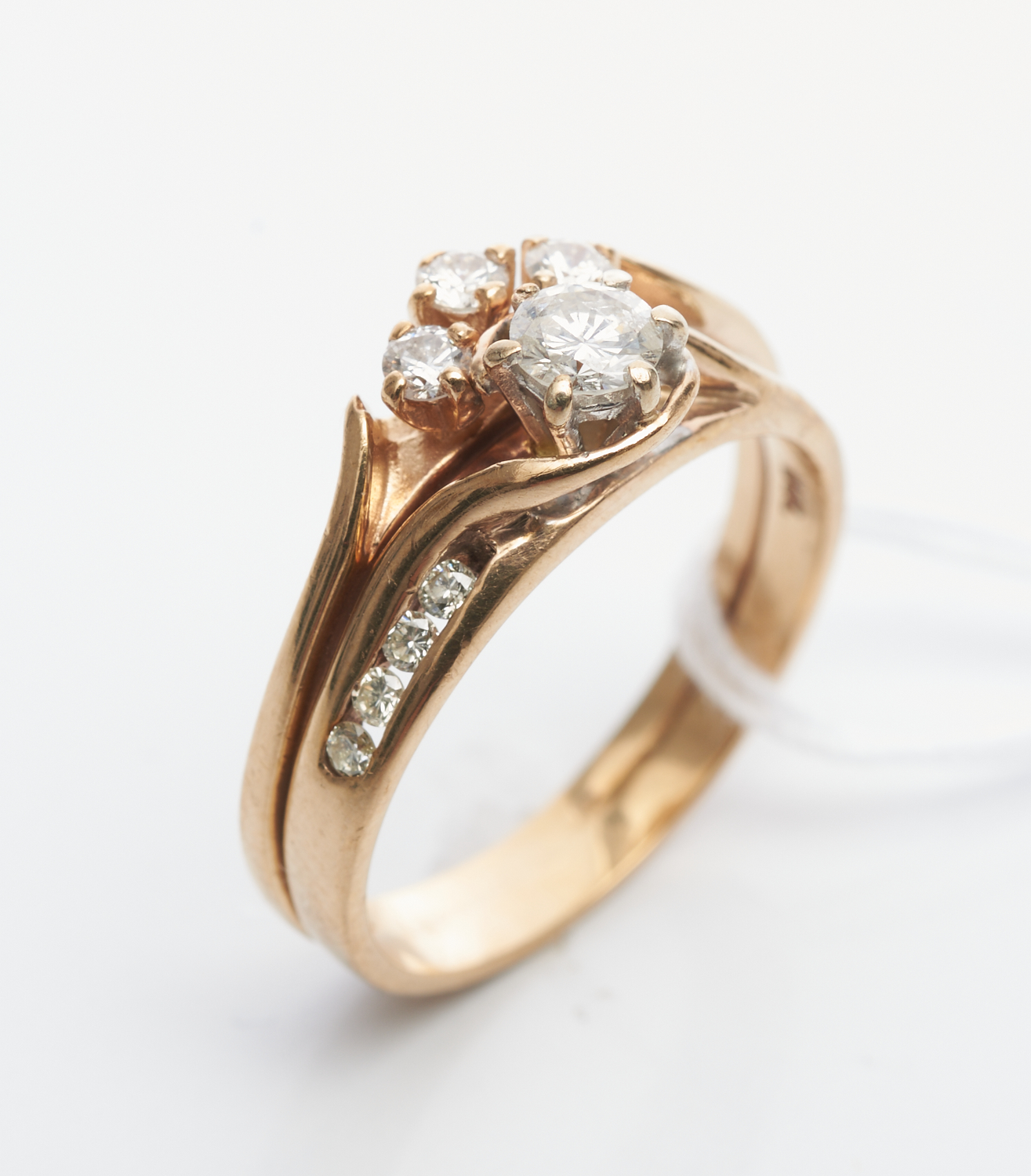 A DIAMOND RING IN 9CT GOLD TOTALLING 0.39CT, SIZE K, 2.8GMS