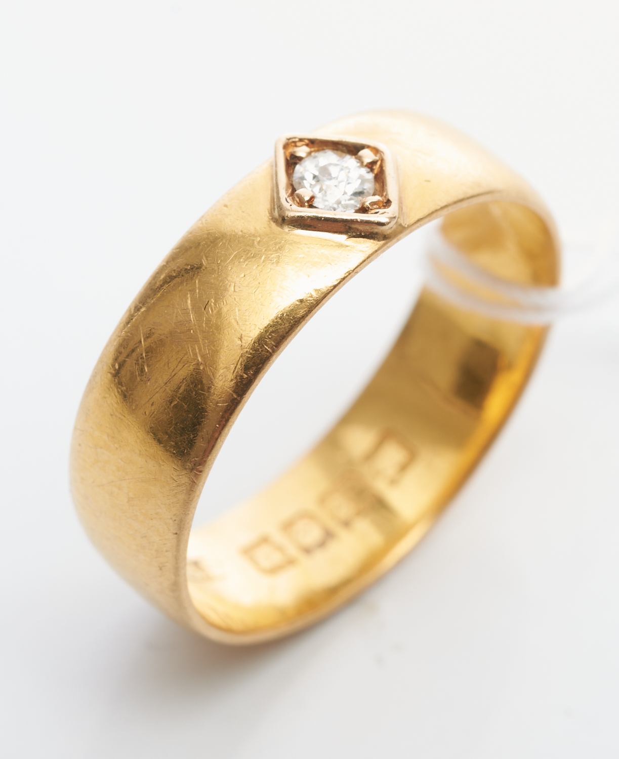AN OLD CUT DIAMOND WEDDING BAND IN 22CT GOLD, HALLMARKED LONDON, 1917, SIZE P-Q, 6GMS