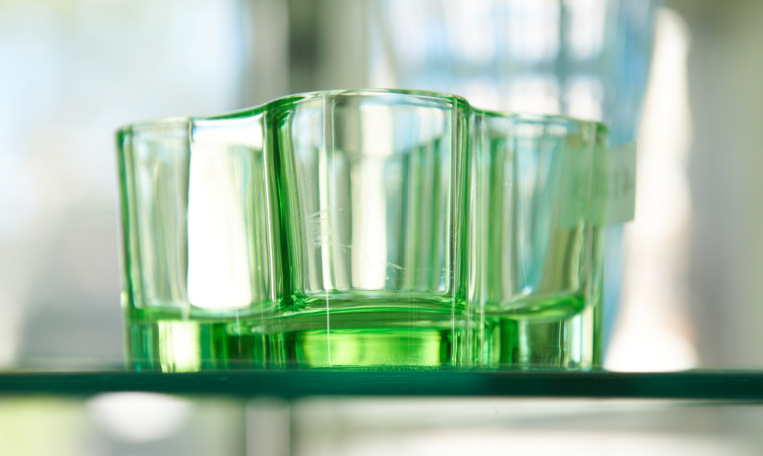 AN ALVAR AALTO GREEN GLASS DISH DESIGNED FOR IITTALA H.5.5CM, LEONARD JOEL LOCAL DELIVERY SIZE: SMALL