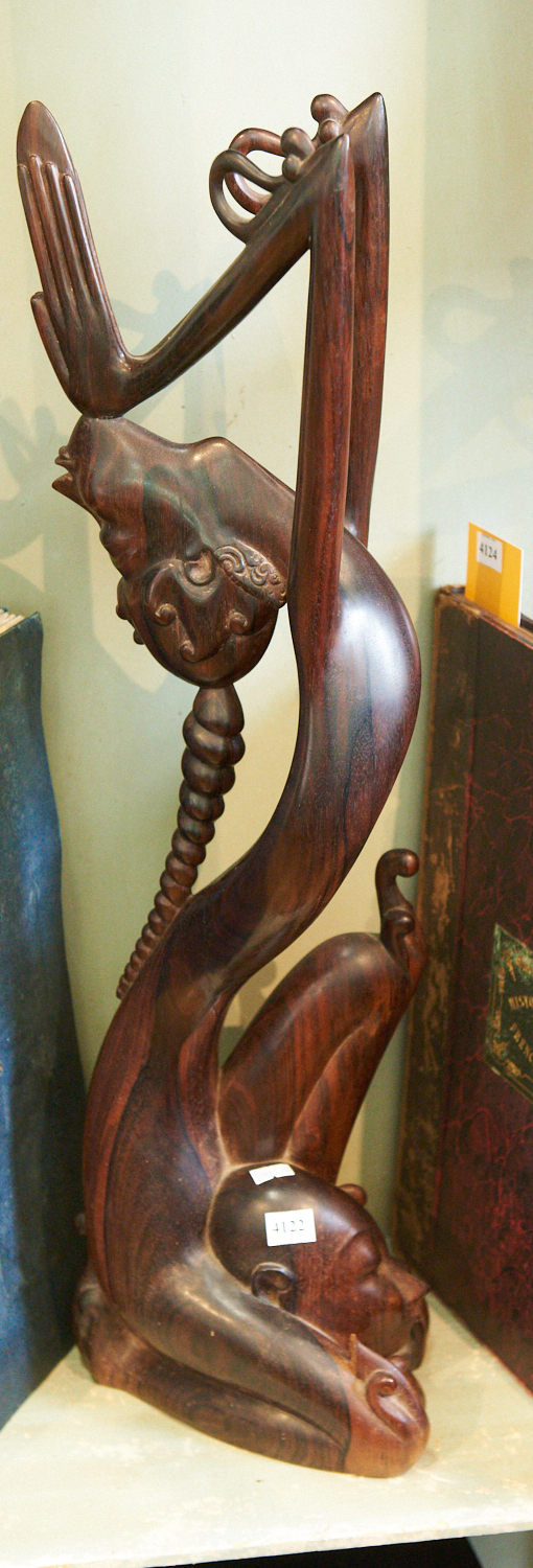 A CARVED ROSEWOOD STATUE H.72CM, LEONARD JOEL LOCAL DELIVERY SIZE: SMALL