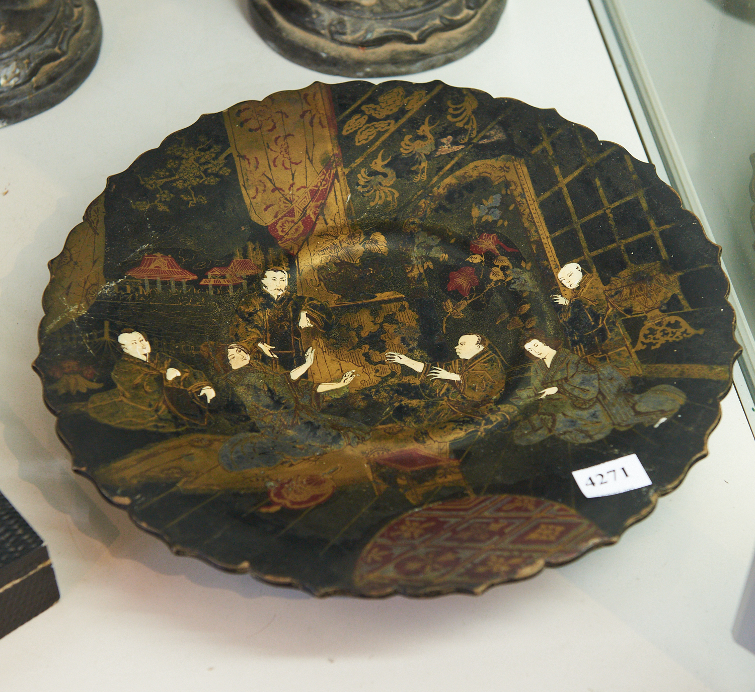 A VICTORIAN PAPIER MACHE WITH CHINOISERIE DECORATION DIA.28CM, LEONARD JOEL LOCAL DELIVERY SIZE: SMALL