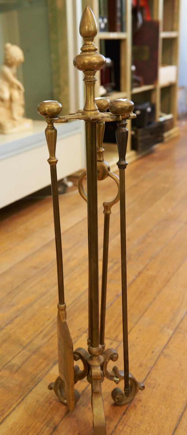 AN ANTIQUE BRASS FIRE TIDY SET H.80CM, LEONARD JOEL LOCAL DELIVERY SIZE: SMALL