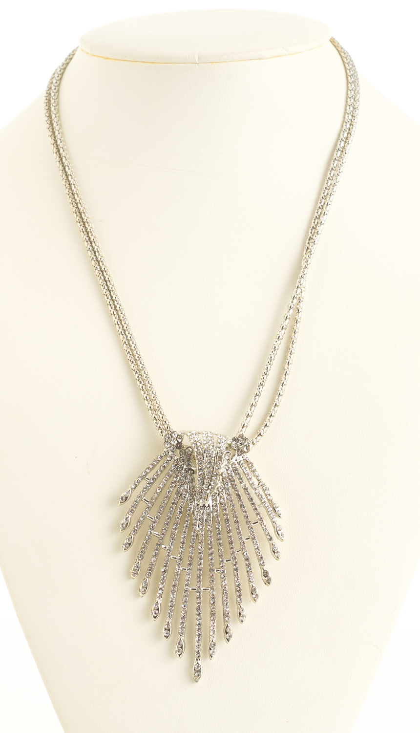 A PASTE SET COSTUME DROP NECKLACE, TOTAL LENGTH 440MM