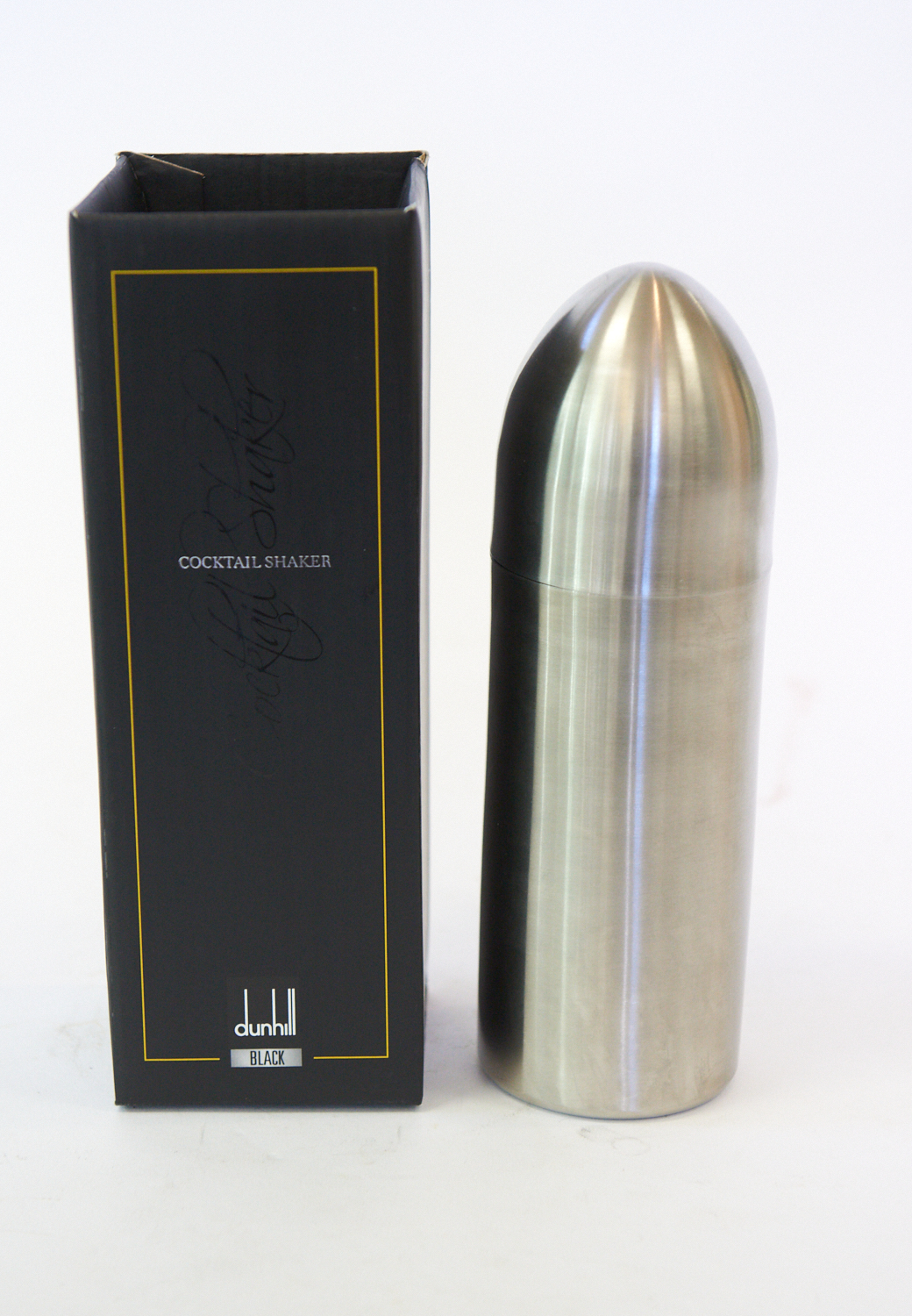 A STAINLESS STEEL COCKTAIL SHAKER BY DUNHILL, LEONARD JOEL LOCAL DELIVERY SIZE: SMALL