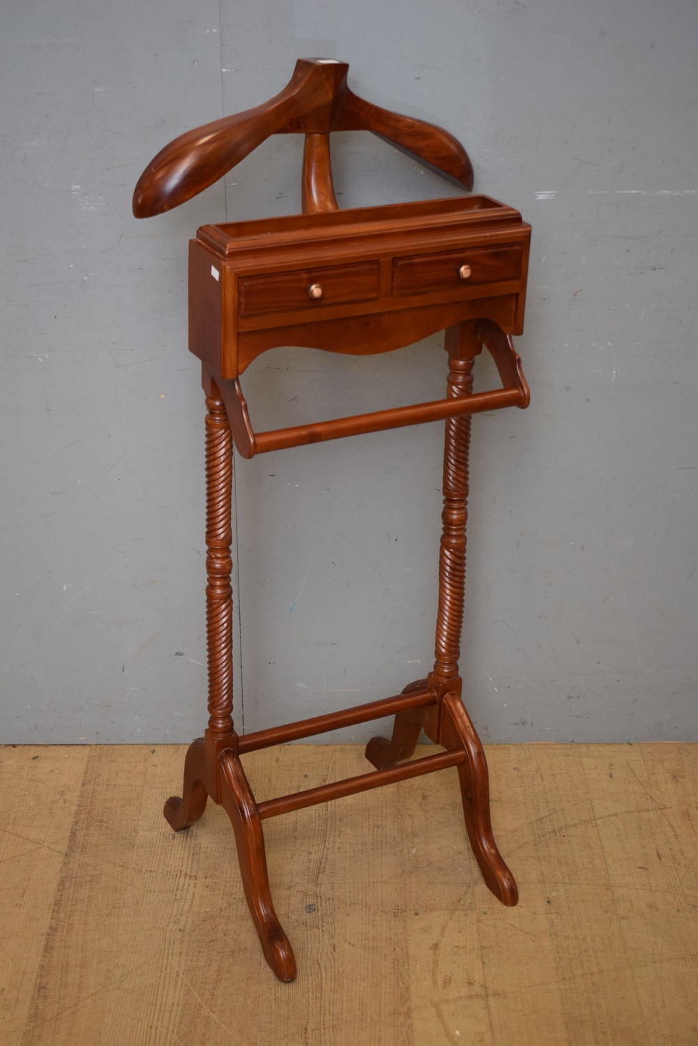 A MAHOGANY GENTLEMAN'S VALET STAND WITH TWO DRAWERS (121H x 54W x 48D CM) (LEONARD JOEL DELIVERY SIZE: MEDIUM)