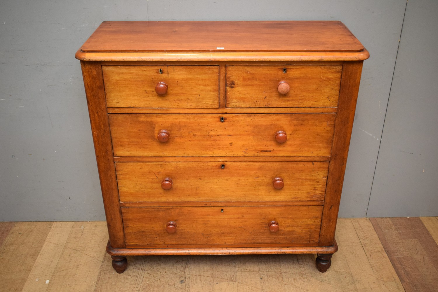 A VICTORIAN CEDAR FIVE DRAWER CHEST OF DRAWERS (108H x 105W x 44D CM) (LEONARD JOEL DELIVERY SIZE: LARGE)