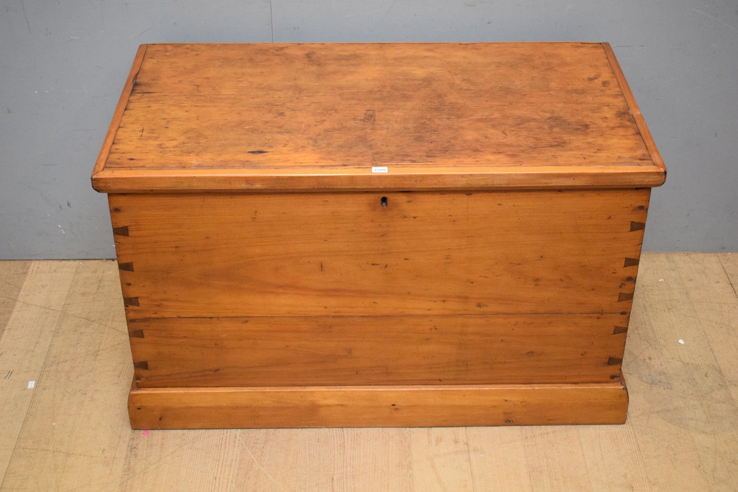 A 19TH CENTURY FLIP TOP TRUNK WITH DOVETAIL JOINERY (56H x 95W x 52D CM) (LEONARD JOEL DELIVERY SIZE: LARGE)