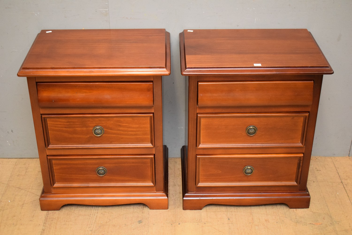 A PAIR OF THREE DRAWER BEDSIDES (66H x 55W x 38D CM) (LEONARD JOEL DELIVERY SIZE: LARGE)