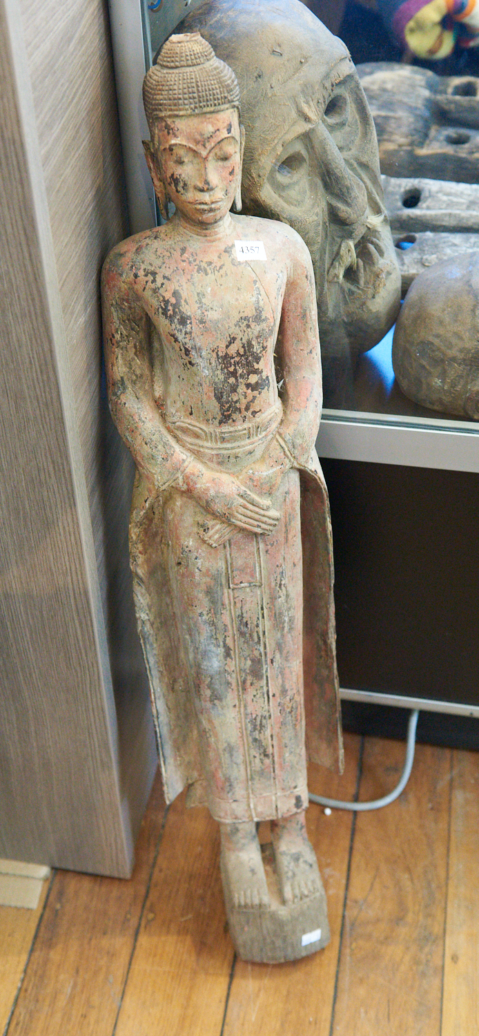 A CARVED WOODEN INDONESIAN FIGURE H.92.5CM, LEONARD JOEL LOCAL DELIVERY SIZE: SMALL