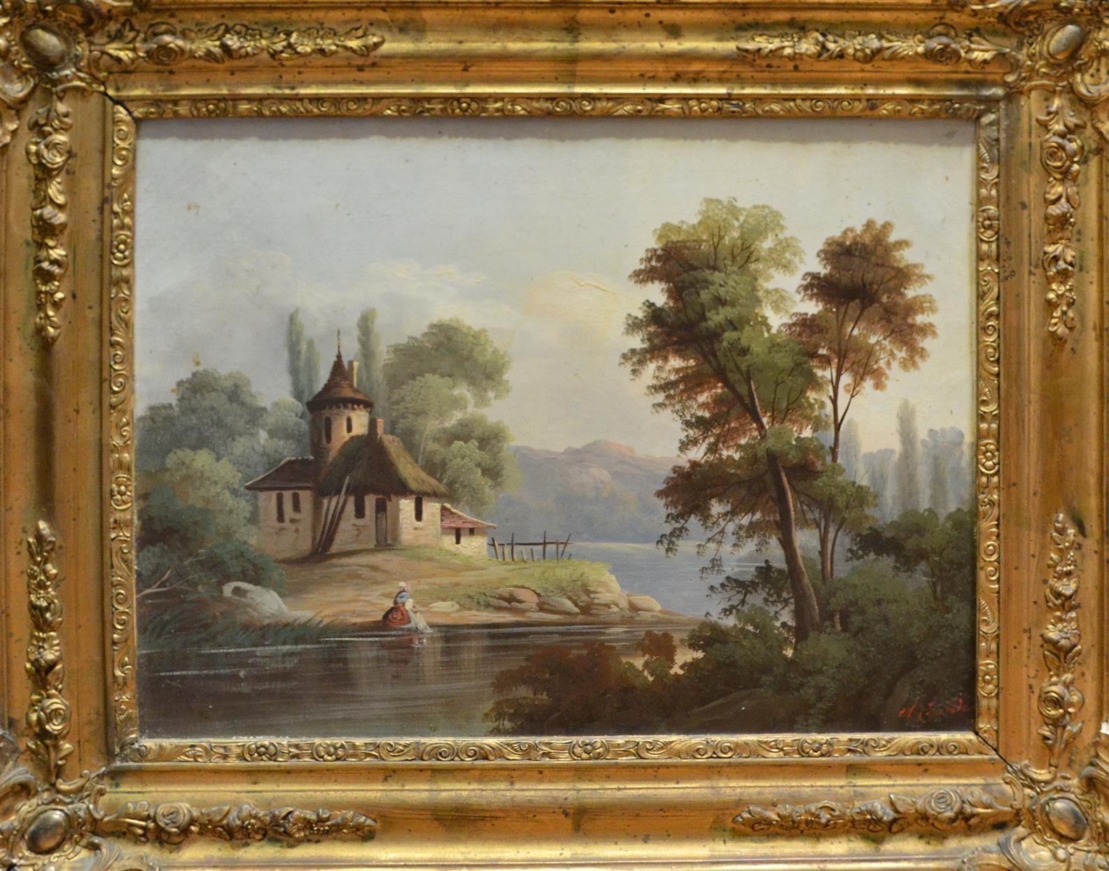 ARTIST UNKNOWN (POSSIBLY FRENCH), VILLAGE SCENE, OIL ON CANVAS, 36 X 45CM, LEONARD JOEL DELIVERY SIZE: SMALL