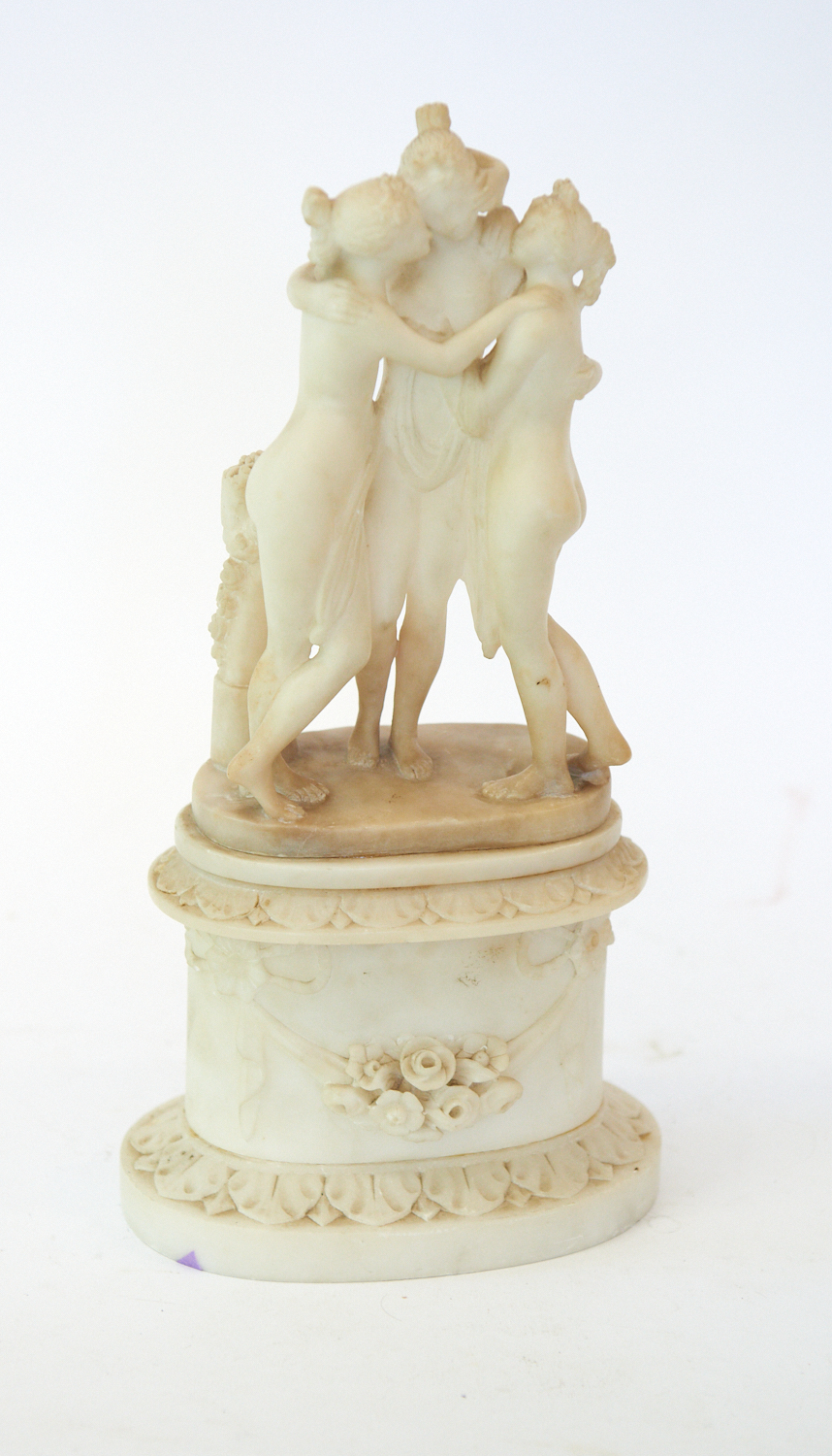 AN ALABASTER FIGURE GROUP OF THE THREE GRACES (36 CM H), LEONARD JOEL LOCAL DELIVERY SIZE: SMALL