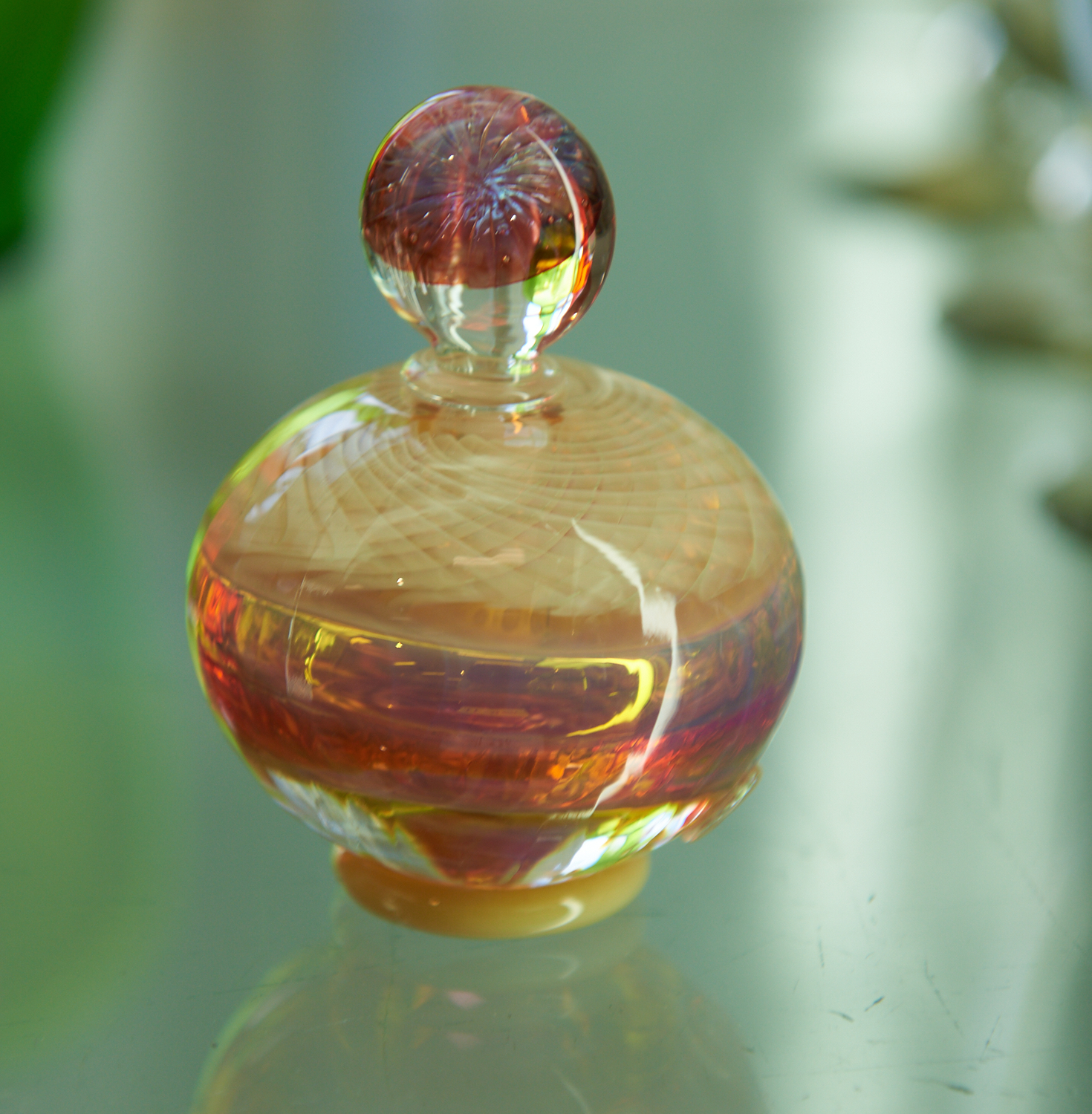 A RICHARD CLEMENTS ART GLASS PERFUME BOTTLE OF SQUAT FORM IN BLUE AND PINK TONES H.7.7CM, LEONARD JOEL LOCAL DELIVERY SIZE: SMALL
