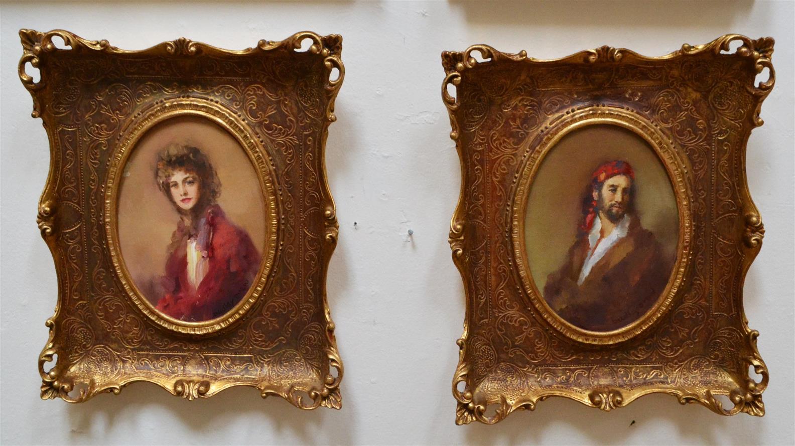 DUDLEY DREW, PAIR OF PORTRAITS, OIL ON BOARD, 24 X 17CM (EACH), LEONARD JOEL DELIVERY SIZE: SMALL