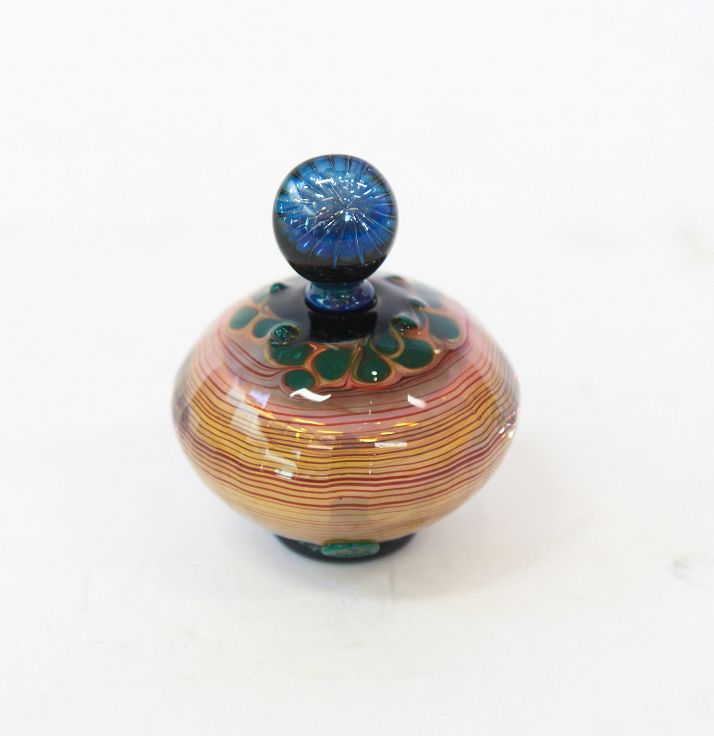 A RICHARD CLEMENTS ART GLASS PERFUME BOTTLE WITH STRIPES H.7.4CM, LEONARD JOEL LOCAL DELIVERY SIZE: SMALL