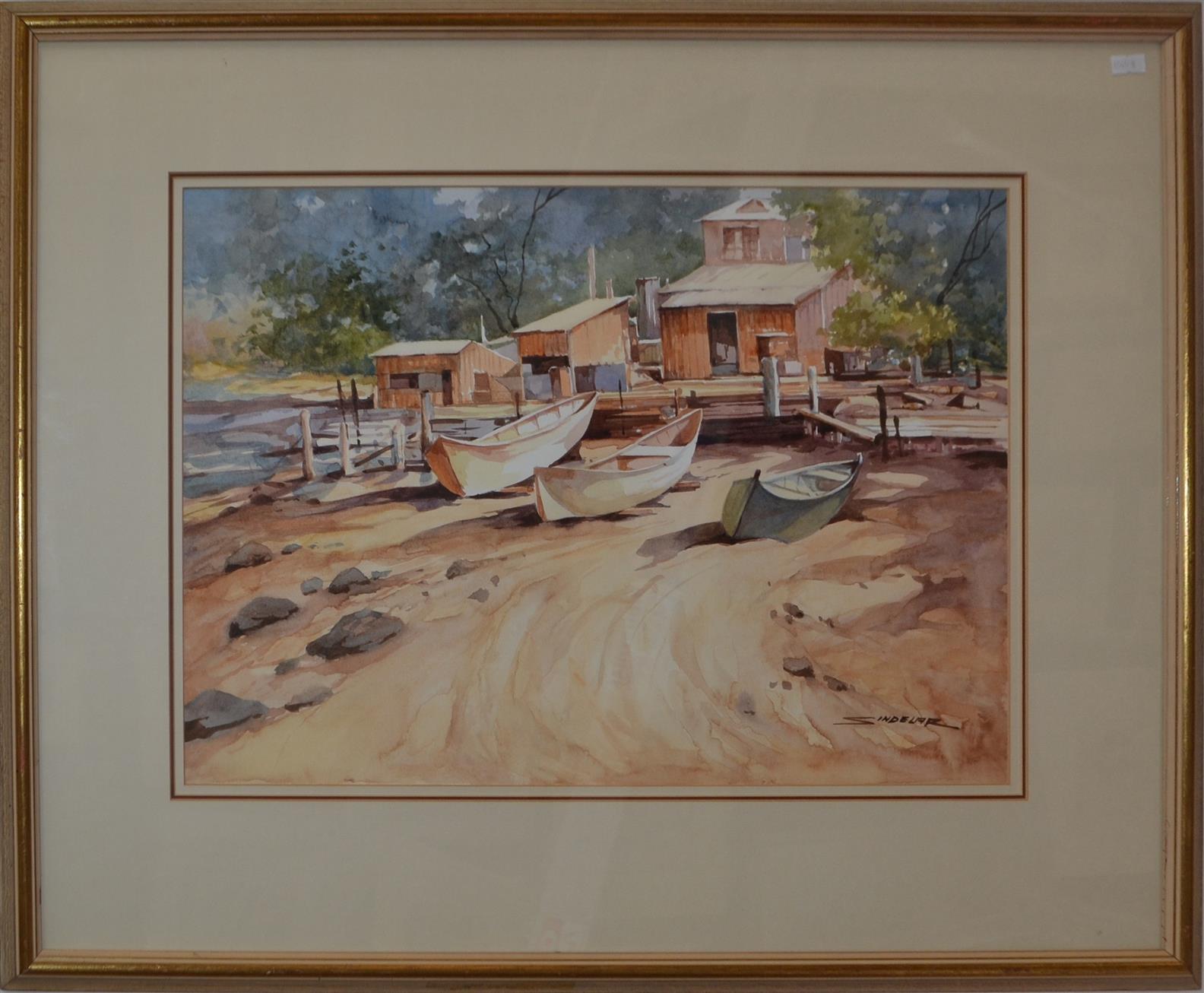 JOHN SINDELAR, LOW TIDE, WATERCOLOUR, 39 X 53CM, LEONARD JOEL DELIVERY SIZE: MEDIUM