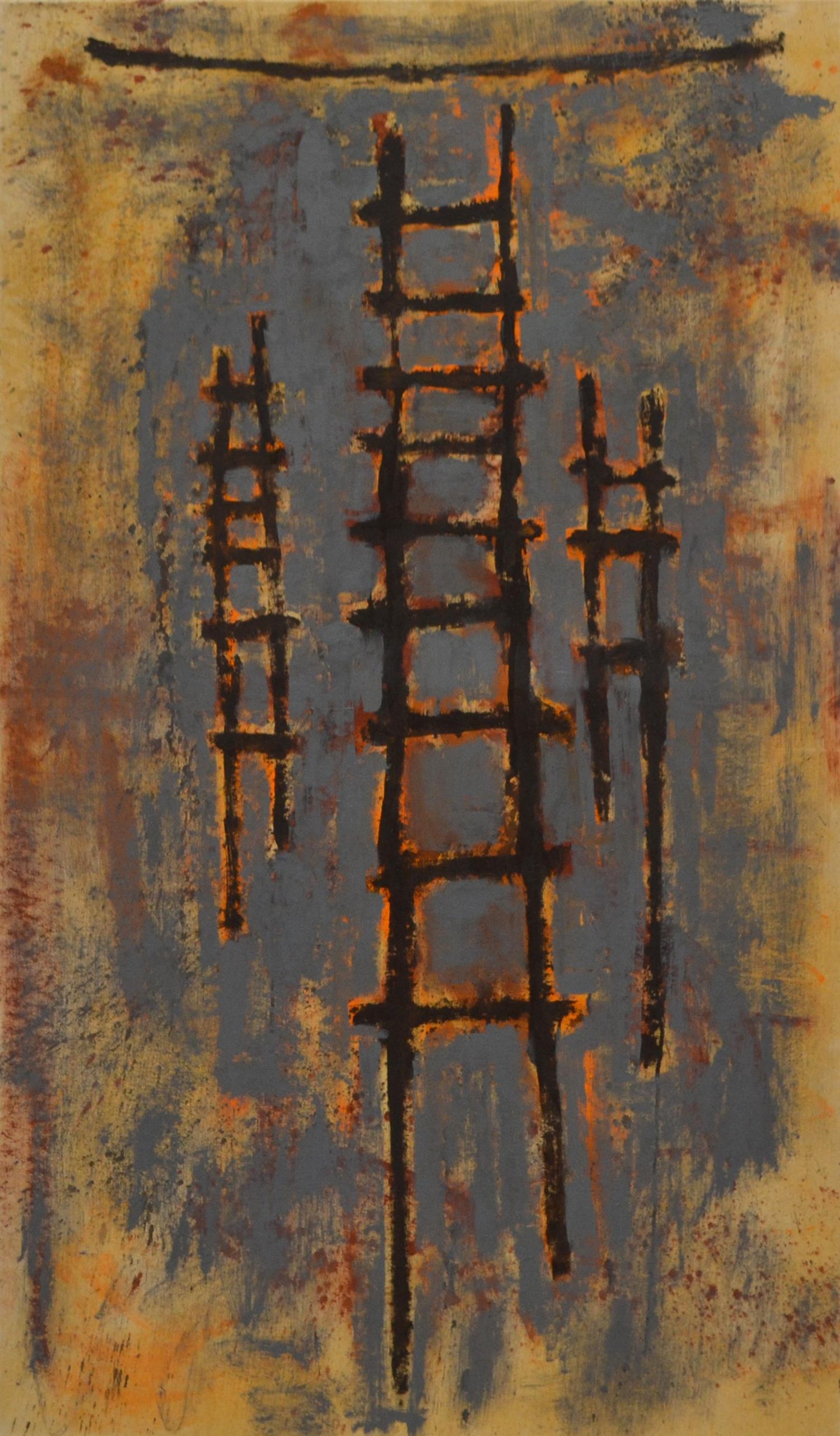 DAVID RANKIN, BLAZING LADDER V 2001, MIXED MEDIA ON CANVAS, 137 X 81CM, CONDITION: VERY GOOD, MINOR WEAR TO EDGES, LEONARD JOEL DELIVERY SIZE: LARGE