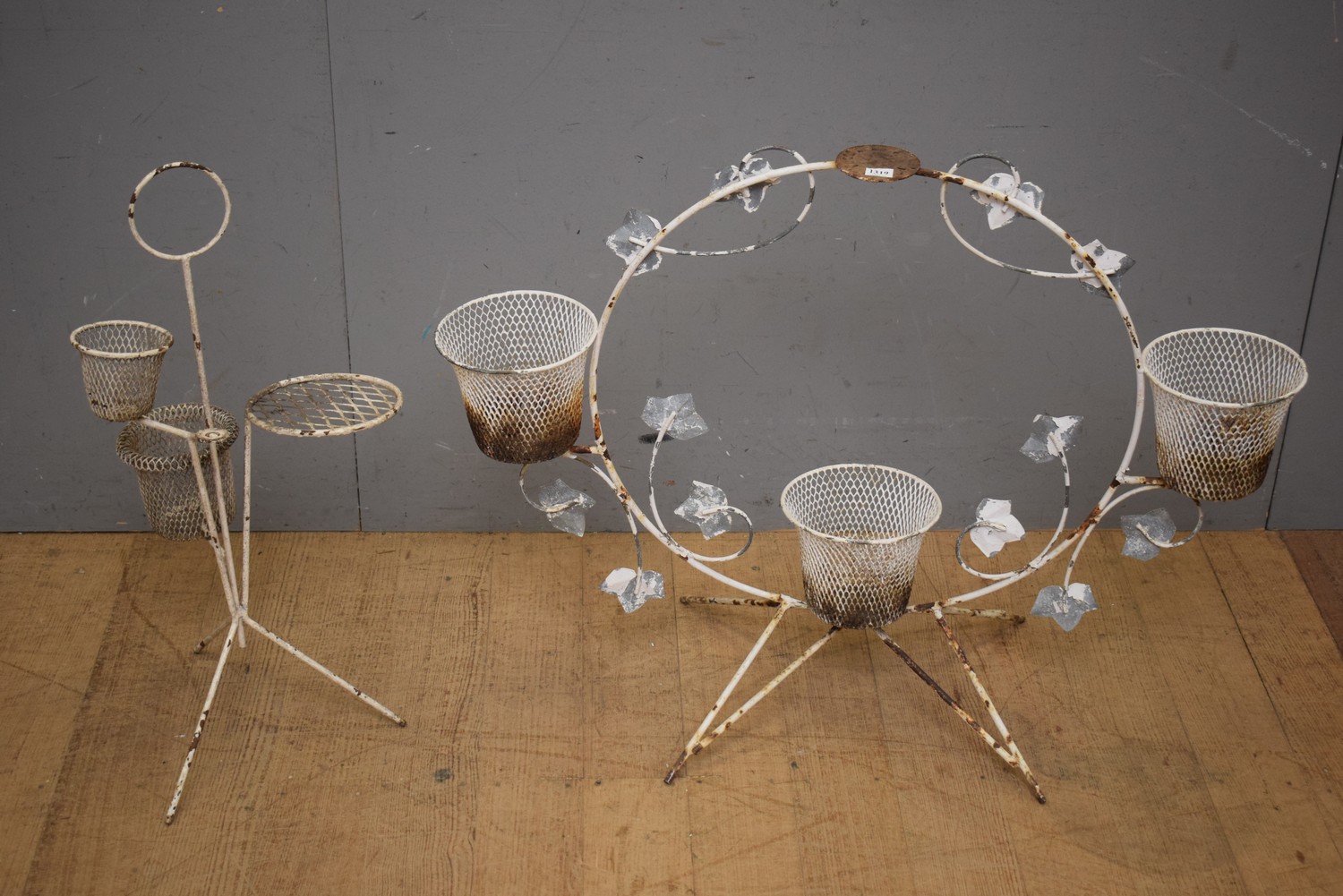 TWO MID CENTURY PLANT STANDS (A/F) (LARGEST 64H x 85W CM) (LEONARD JOEL DELIVERY SIZE: MEDIUM)