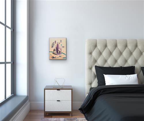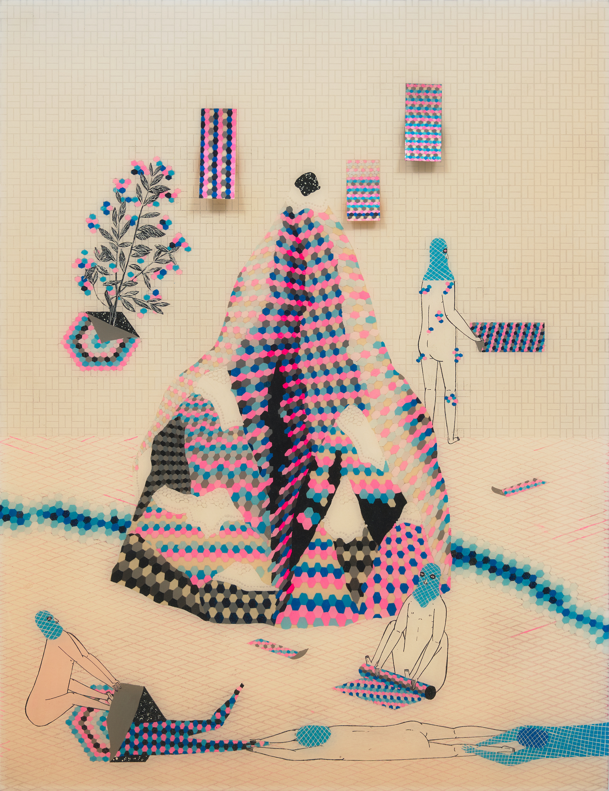 synthetic polymer paint, ink, gouache, graphite and resin on paper on wood panel
