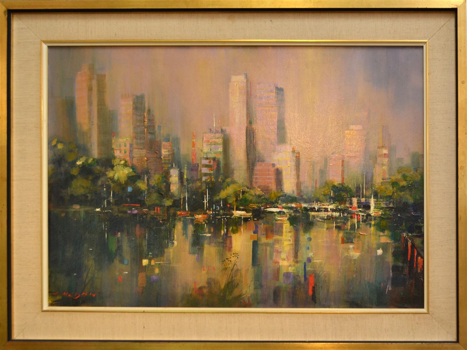 KARLIS MEDNIS, CITYSCAPE, OIL ON BOARD, 51 X 74CM, LEONARD JOEL DELIVERY SIZE: MEDIUM