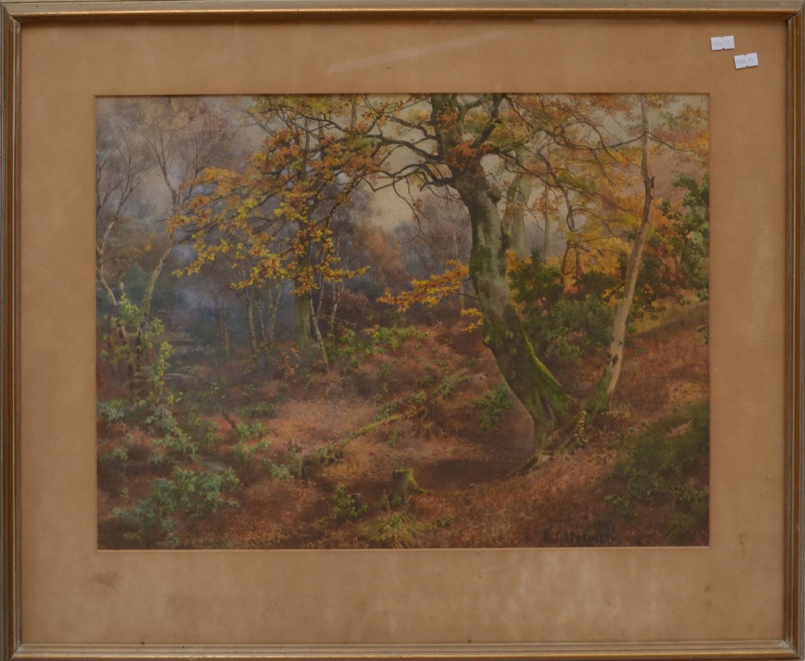 BENJAMIN J OTTEWELL, LANDSCAPE WITH TREES, WATERCOLOUR, 44 X 58CM, LEONARD JOEL DELIVERY SIZE: MEDIUM