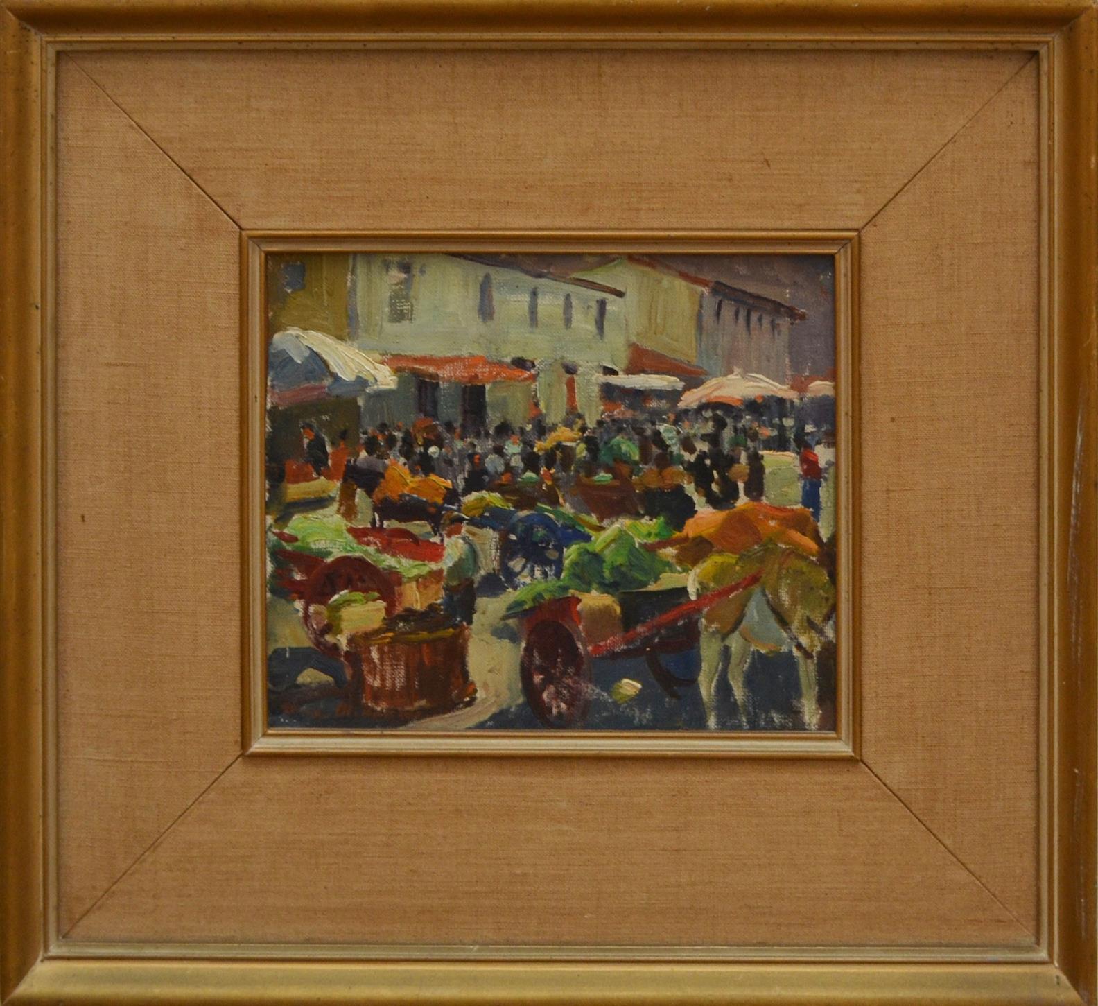 MAX MIDDLETON, STREET SCENE, OIL ON CANVAS LAID ON BOARD, 19 X 23CM, LEONARD JOEL DELIVERY SIZE: SMALL