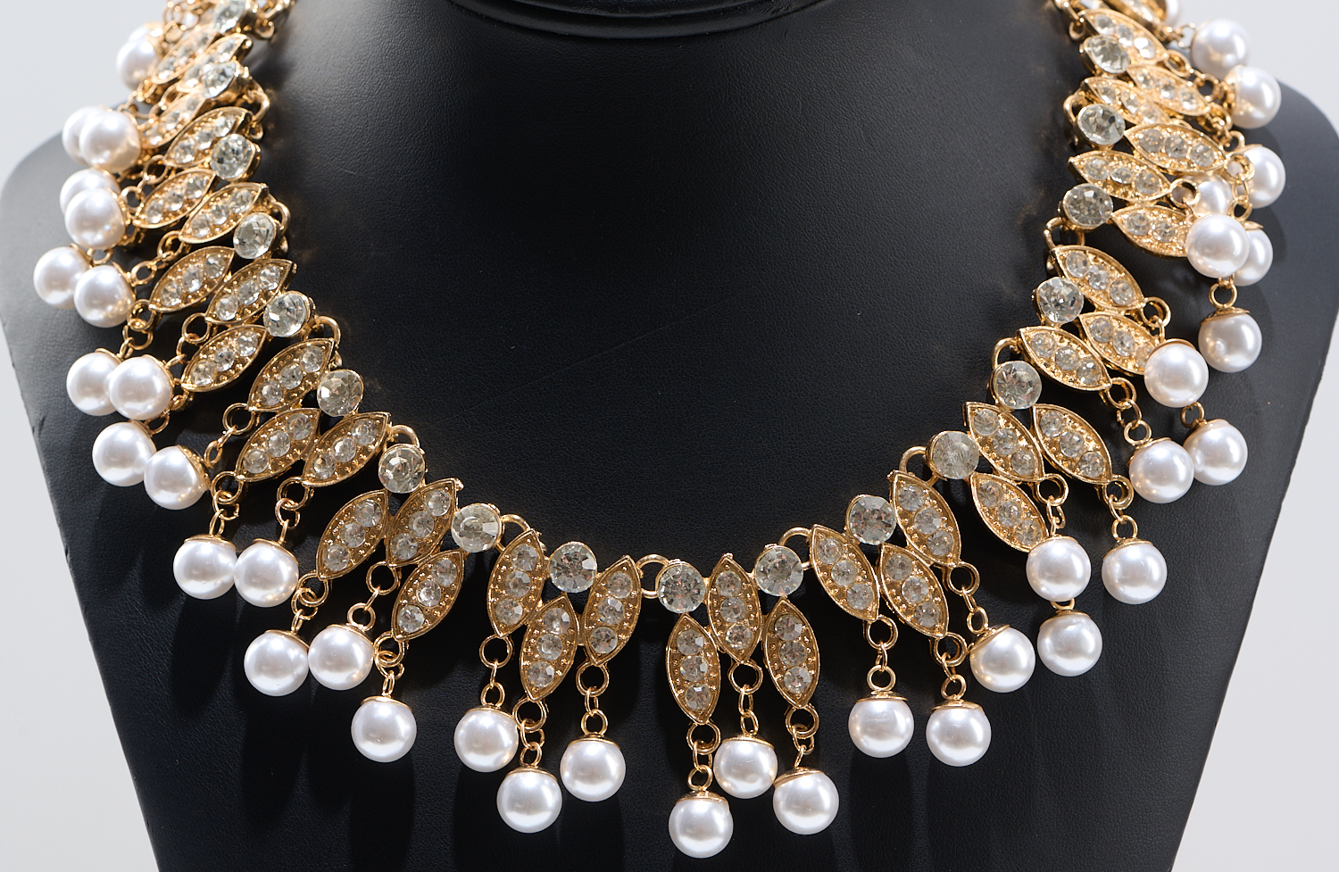 A GEM SET AND FAUX PEARL CHOKER STYLE NECKLACE IN GOLD TONED METAL, TO A LOBSTER CLASP, SIGNED OSCAR DE LA RENTA