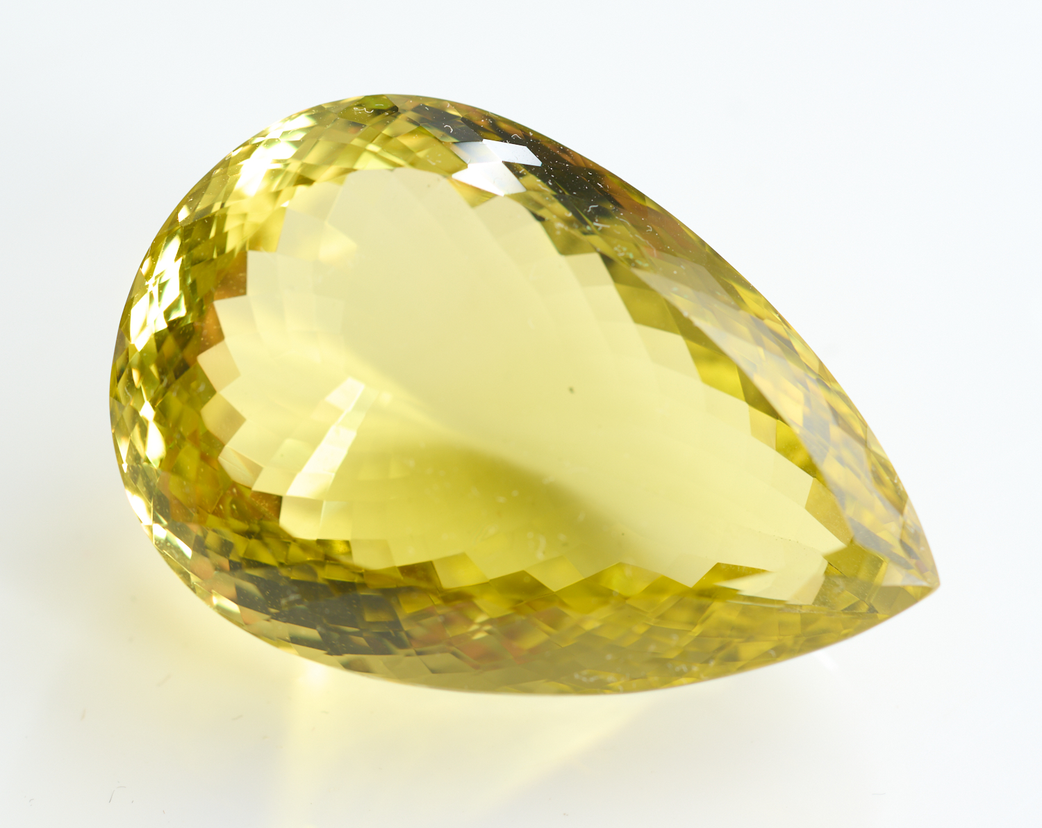 A LARGE LOOSE PEAR CUT LEMON QUARTZ WEIGHING 137.30CTS