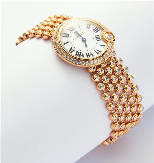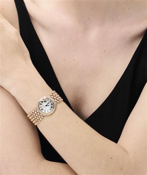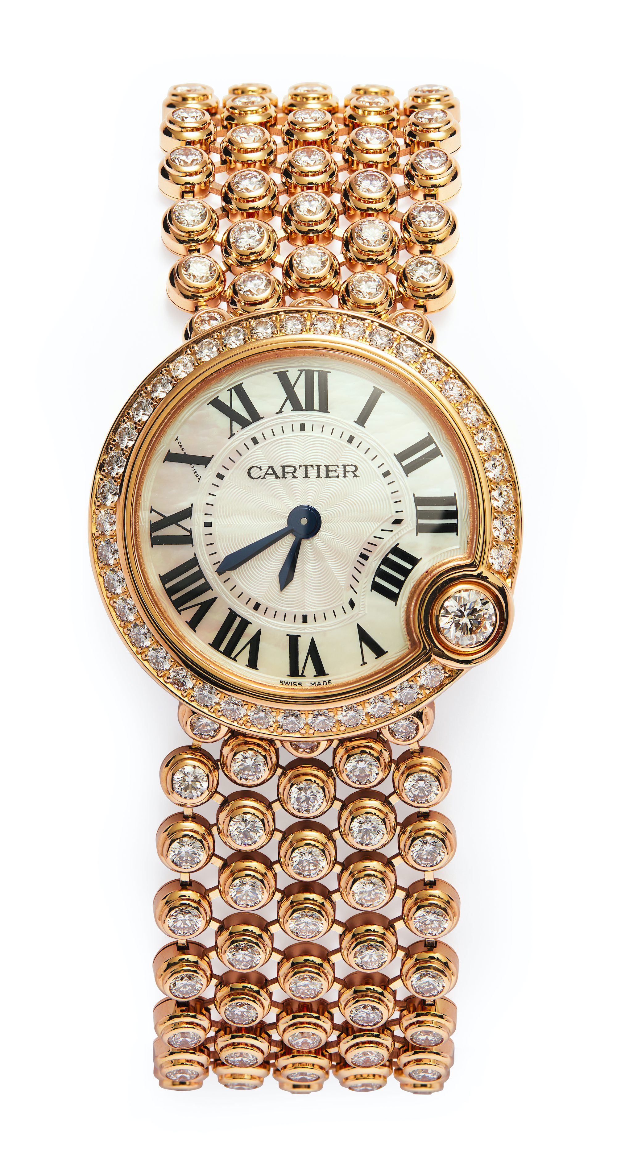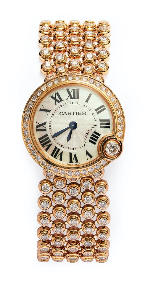 CARTIER REF. 3722, A MAGNIFICENT, LAVISH AND EXCEPTIONALLY RARE 18CT ROSE GOLD WITH BRILLIANT-CUT DIAMOND-SET BRACELET BALLON BLANC LADY'S WATCH WITH MOTHER-OF-PEARL FLINQUÉ DIAL