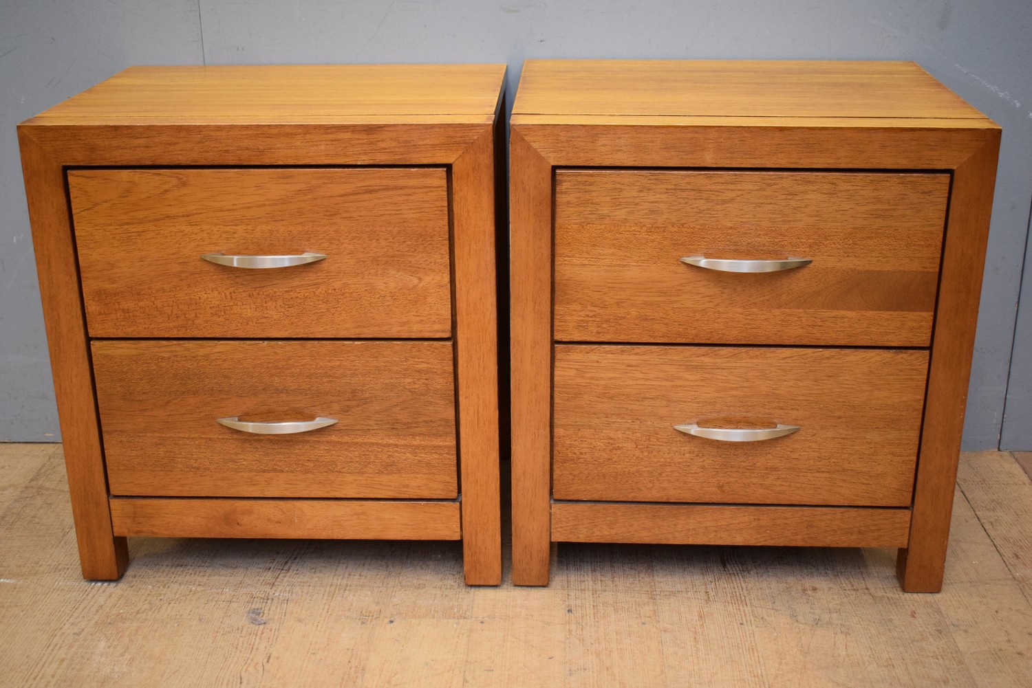 A PAIR OF CONTEMPORARY TWO DRAWER BEDSIDE CABINETS (55H X 50W X 39D CM) (LEONARD JOEL DELIVERY SIZE: LARGE)