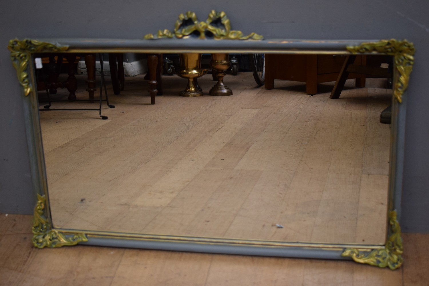 A DECORATIVELY PAINTED AND GILT WALL MIRROR (57H X 85W CM) (LEONARD JOEL DELIVERY SIZE: MEDIUM)