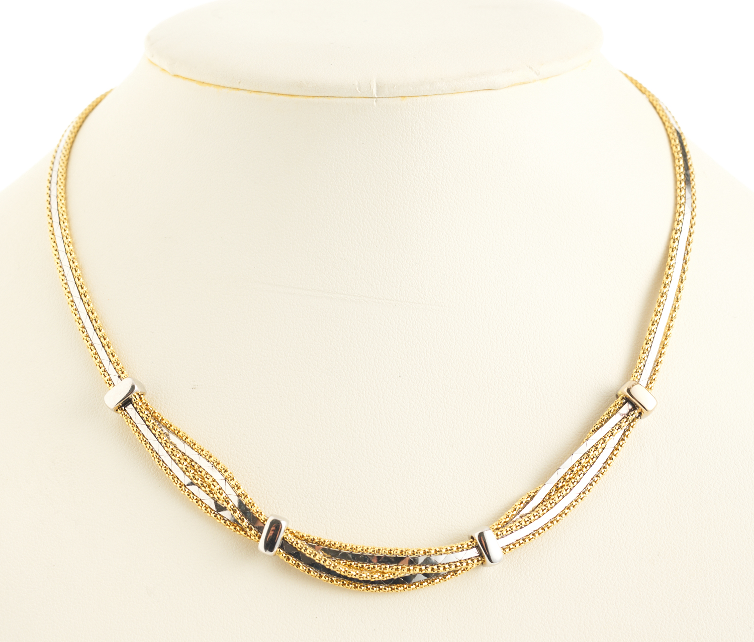 AN ITALIAN NECKLACE IN TWO TONE 18CT GOLD, LENGTH 41CMS, 20.2GMS (A/F)