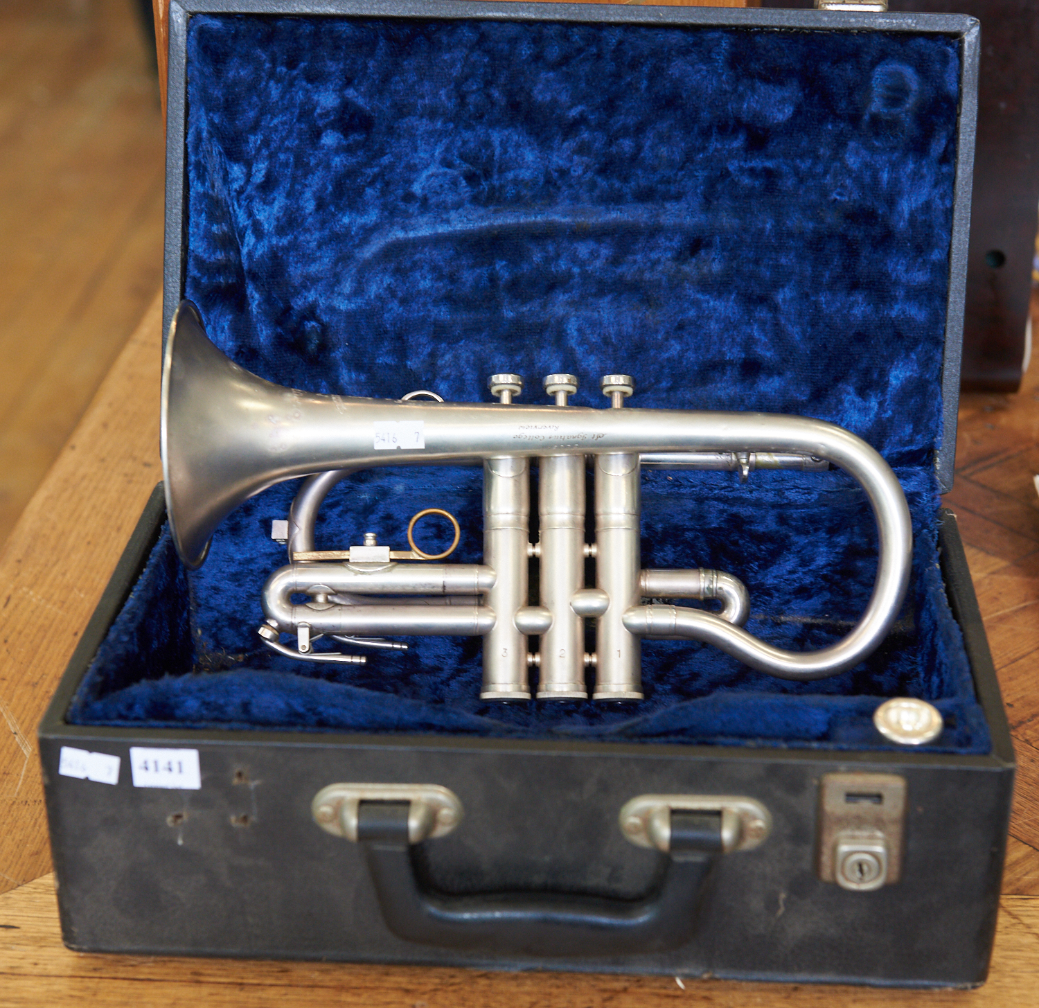 A SOPRANO CORNET IN CASE, LEONARD JOEL LOCAL DELIVERY SIZE: SMALL
