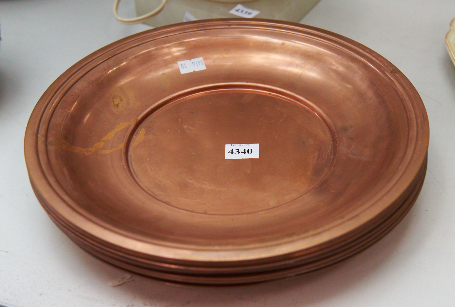 A GROUP OF COPPER PLATES DIA.28CM, LEONARD JOEL LOCAL DELIVERY SIZE: SMALL