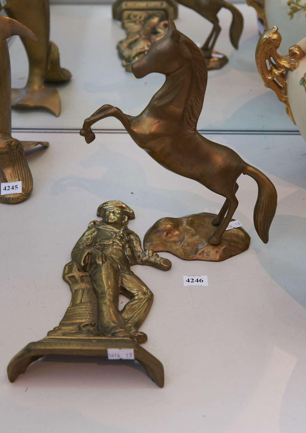 A BRASS SCULPTURE OF A HORSE TOGETHER WITH 'BRITAINS PRIDE' WALL PLAQUE H.28CM, LEONARD JOEL LOCAL DELIVERY SIZE: SMALL
