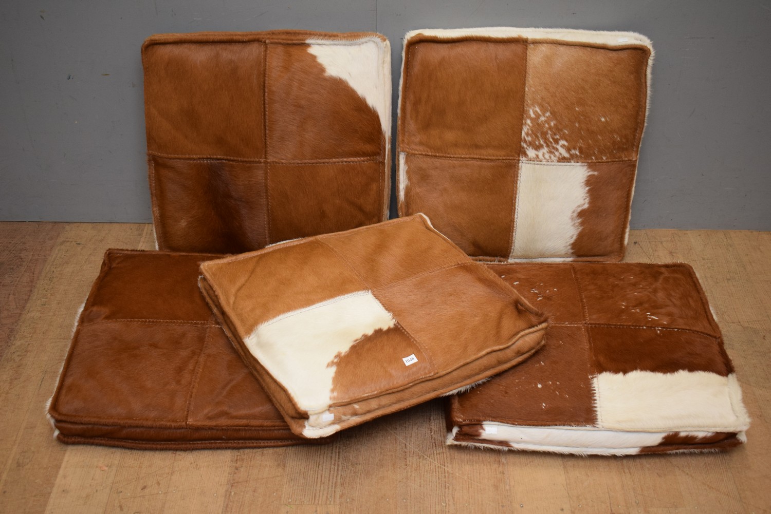 FIVE COW HIDE THROW CUSHIONS (57H x 57W x 8D CM) (LEONARD JOEL DELIVERY SIZE: MEDIUM)