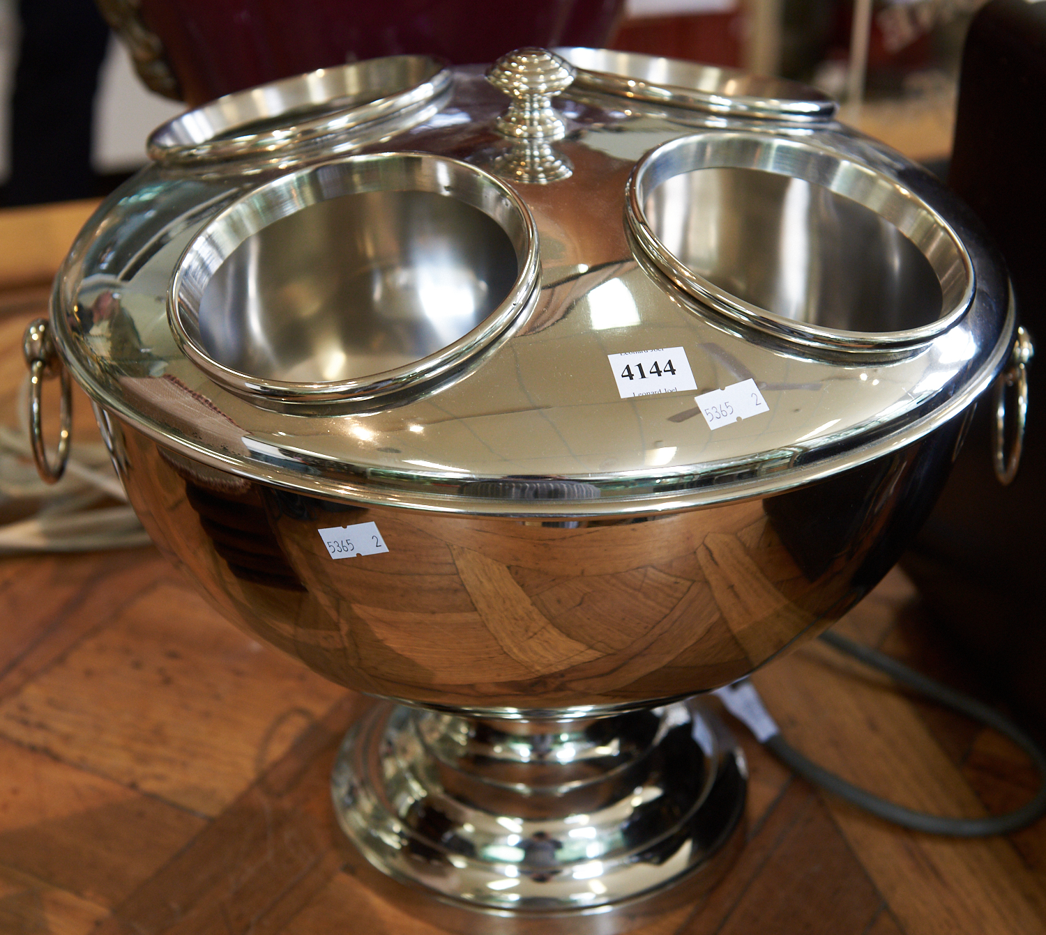 A SILVERPLATED ART DECO STYLE FOUR BOTTLE CHAMPAGNE BUCKET, LEONARD JOEL LOCAL DELIVERY SIZE: SMALL