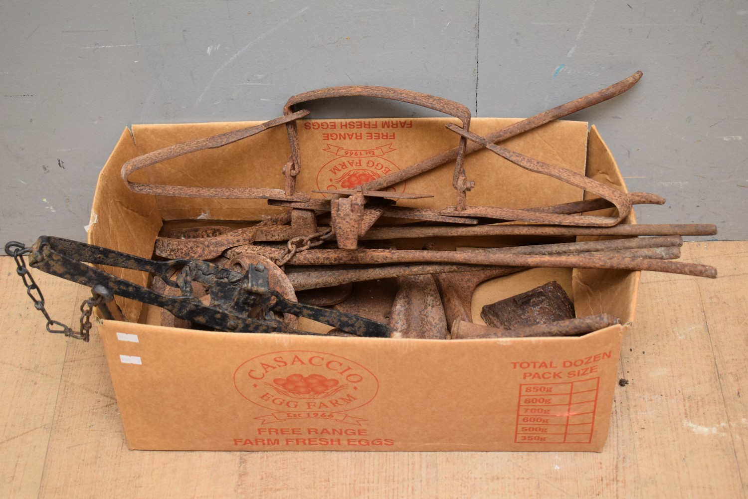 A COLLECTION OF METAL WARES INCLUDING SHOE LASTS, ANDIRONS, BOOT LASTS (LEONARD JOEL DELIVERY SIZE: MEDIUM)